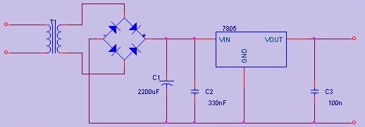Las fuentes no reguladas. Incluye un transformador, un rectificador (por lo general tipo puente) y un filtro (que en el caso de las fuentes en el rango de voltajes y potencias bajas es puramente capacitivo). Con estos componentes aplican un voltaje y suministran una cantidad de corriente a una carga. Cuando las fuentes no reguladas son el primer bloque de las fuentes reguladas, la carga es el regulador.